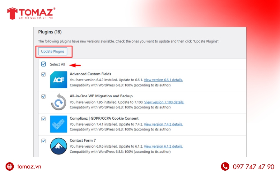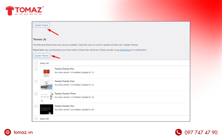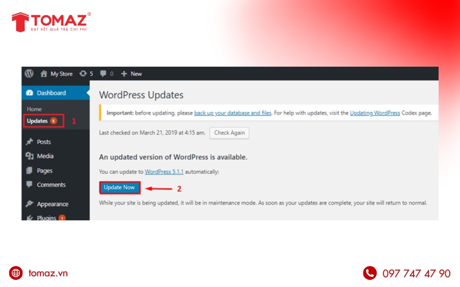 Cập nhật WordPress định kỳ là bước quan trọng giúp website duy trì sự ổn định, tăng cường bảo mật và tối ưu tốc độ tải trang. Mỗi phiên bản mới không cần mang đến các tính năng cải tiến mà còn khắc phục lỗ hổng, nâng cao khả năng tương thích với plugin và giao diện. Tuy nhiên, nếu thực hiện cập nhật không đúng quy trình, website có thể phát sinh lỗi hiển thị, xung đột hệ thống hoặc thậm chí thất thoát dữ liệu ngoài ý muốn. Chính vì vậy, việc nắm rõ cách cập nhật WordPress thủ công đúng chuẩn sẽ giúp bạn chủ động kiểm soát rủi ro và đảm bảo quá trình nâng cấp diễn ra an toàn, hiệu quả. Cùng TOMAZ tìm hiểu chi tiết các bước cập nhật WordPress nhanh chóng, chuẩn kỹ thuật ngay dưới đây nhé!