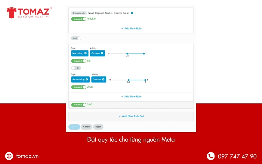 Đây là bước quan trọng giúp bạn xác định chính xác nhóm khách truy cập mà mình muốn nhắm đến. Bạn cần lựa chọn nguồn, sự kiện, thời gian lưu giữ đối tượng và các quy tắc bao gồm hoặc loại trừ. Một số tùy chọn phổ biến có thể áp dụng gồm: