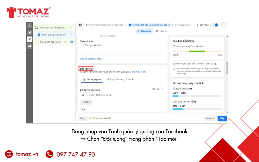 Hãy để TOMAZ giúp bạn biến mỗi chiến dịch quảng cáo thành cơ hội kinh doanh hiệu quả nhất. Liên hệ với chúng tôi ngay hôm nay để được tư vấn chi tiết và bắt đầu triển khai chiến dịch Remarketing Facebook chuyên nghiệp.