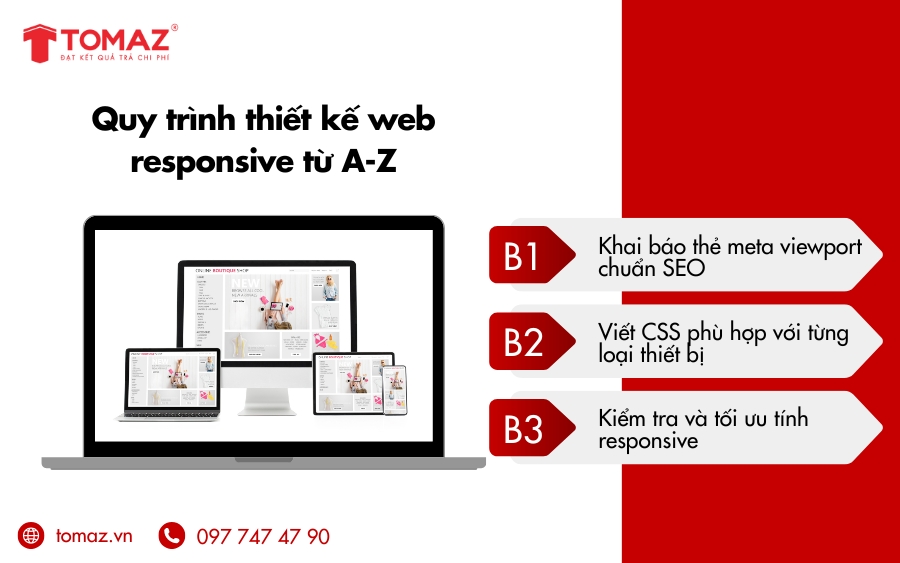 Nếu bạn đang tìm kiếm một đơn vị uy tín để thiết kế web responsive, đội ngũ nhân viên tại TOMAZ luôn sẵn sàng hỗ trợ 24/7. Chúng tôi sẽ lắng nghe nhu cầu của bạn, tư vấn chi tiết về các giải pháp công nghệ responsive web design, đồng thời đưa ra những phương án thiết kế và báo giá phù hợp nhất cho từng dự án.