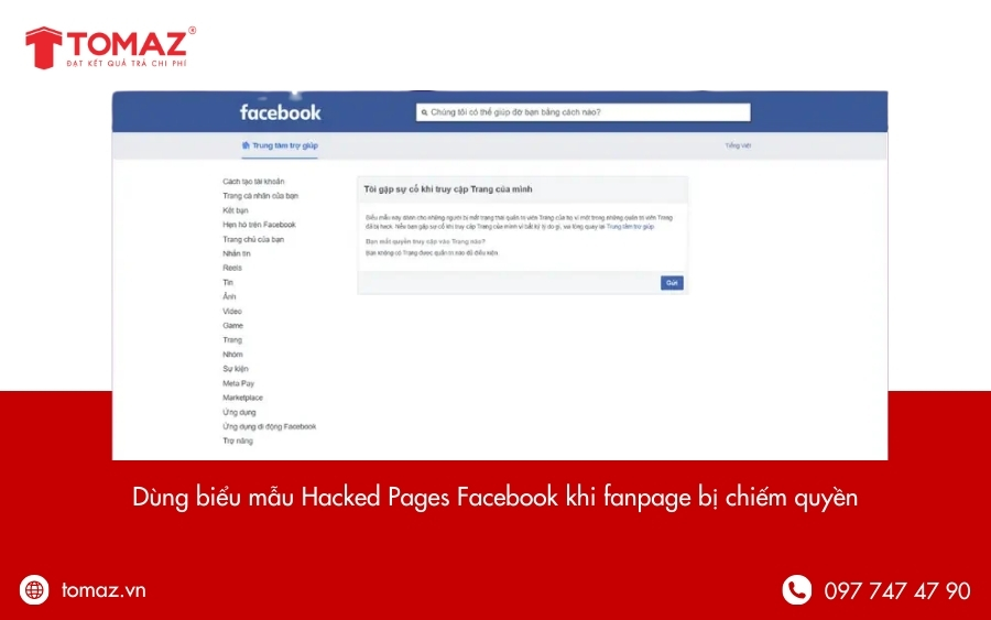 Khi Fanpage bị chiếm quyền quản trị do hacker tấn công, Facebook có cung cấp một biểu mẫu hỗ trợ chuyên biệt mang tên Hacked Pages. Đây là kênh xử lý chính thống dành riêng cho các Fanpage bị xâm nhập trái phép. Tuy nhiên, quy trình này khá phức tạp, yêu cầu nhiều giấy tờ xác minh, vì vậy chỉ nên áp dụng khi Fanpage có giá trị lớn, gắn liền với thương hiệu, doanh nghiệp hoặc tổ chức chính thức.