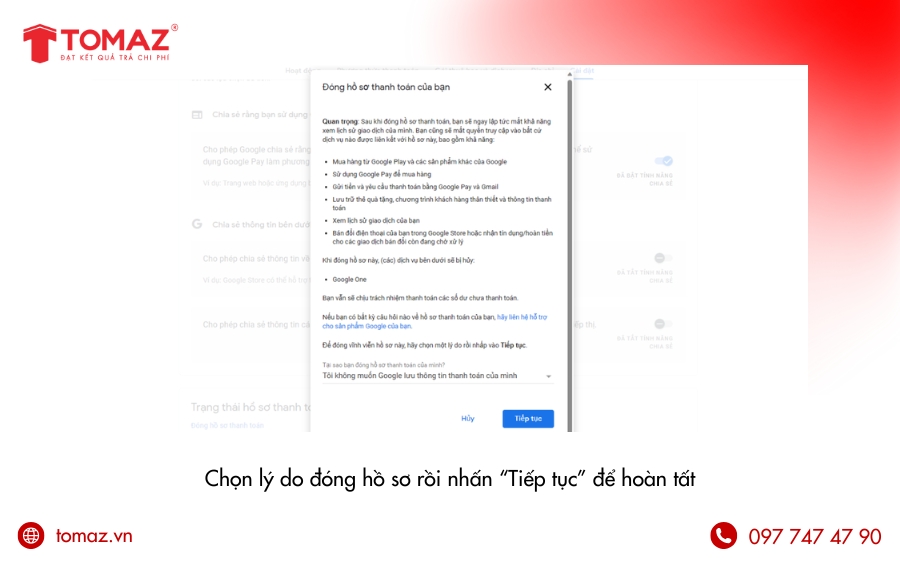 Bạn đang loay hoay không biết cách đóng hồ sơ thanh toán Google của mình như thế nào? Đã thử tìm trong phần cài đặt nhưng vẫn chưa thấy chỗ để thao tác? Đừng lo! Trong bài viết này, TOMAZ sẽ hướng dẫn bạn cách đóng hồ sơ thanh toán Google chỉ trong vài phút – với các bước cực kỳ đơn giản, dễ hiểu, ai cũng có thể tự làm được mà không cần am hiểu kỹ thuật. Cùng bắt đầu nhé!