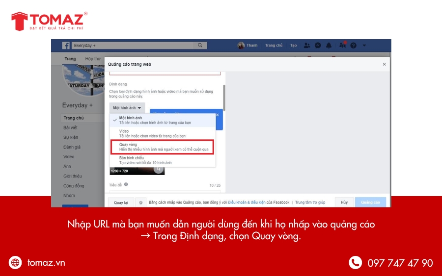 5.1. Cách tạo quảng cáo xoay vòng trên Trang Fanpage