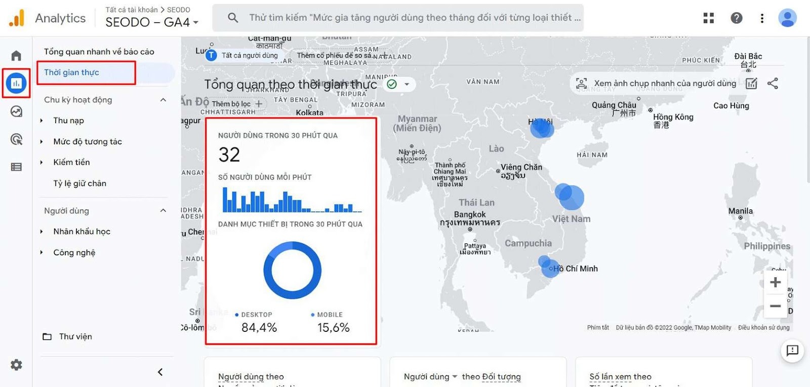 - Tuy nhiên, cách chắc chắn nhất để kiểm tra là vào Google Analytics → Báo cáo → Thời gian thực. Tại đây, bạn sẽ thấy phiên truy cập của mình được ghi nhận, chứng tỏ GA4 đã hoạt động đúng.