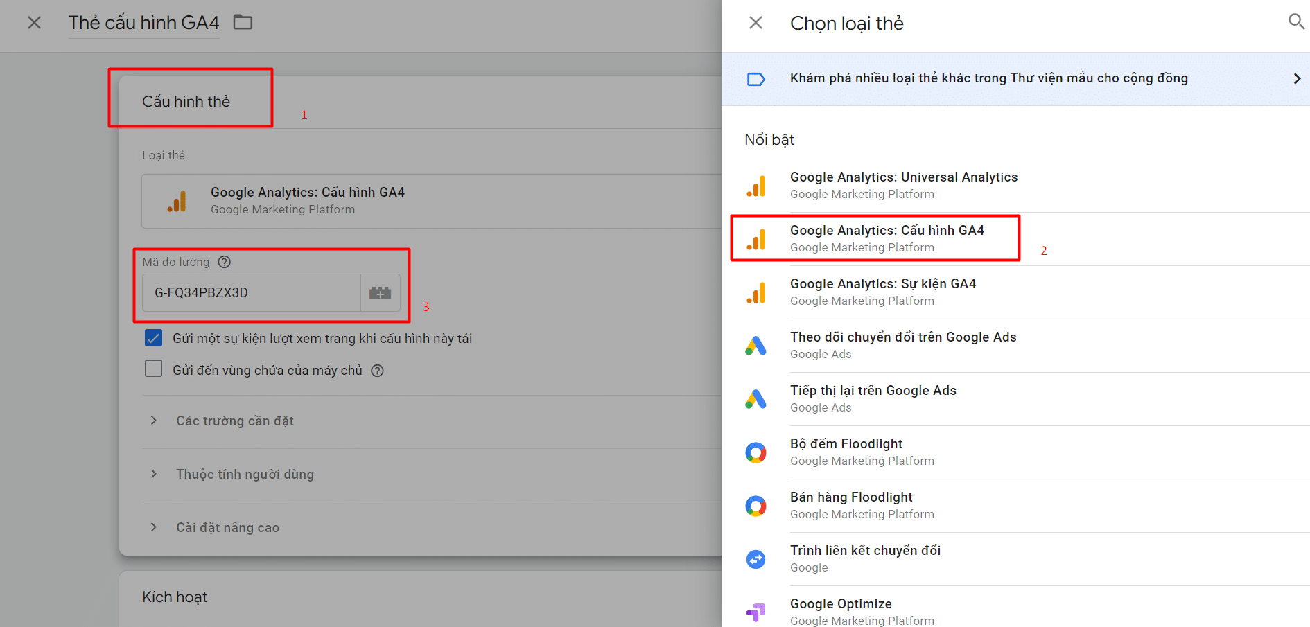 - Các thẻ khác (ví dụ: Google Ads) đều cài đặt tương tự như trên.