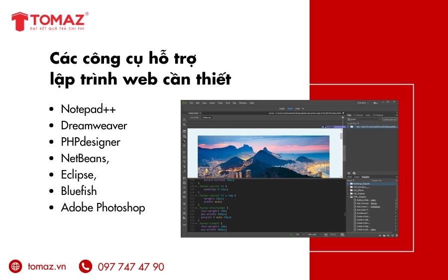 Ngoài ra, bạn có thể tham khảo thêm các công cụ hữu ích khác như NetBeans, Eclipse, Bluefish, hay Adobe Photoshop – hỗ trợ tốt cho việc lập trình, thiết kế giao diện và xử lý hình ảnh cho website.