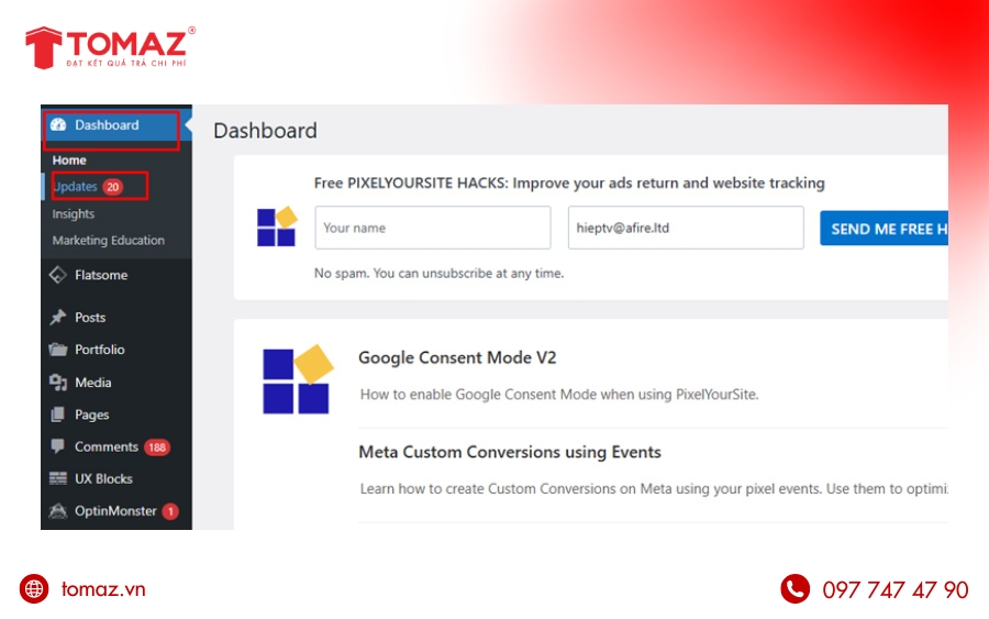 Cập nhật WordPress định kỳ là bước quan trọng giúp website duy trì sự ổn định, tăng cường bảo mật và tối ưu tốc độ tải trang. Mỗi phiên bản mới không cần mang đến các tính năng cải tiến mà còn khắc phục lỗ hổng, nâng cao khả năng tương thích với plugin và giao diện. Tuy nhiên, nếu thực hiện cập nhật không đúng quy trình, website có thể phát sinh lỗi hiển thị, xung đột hệ thống hoặc thậm chí thất thoát dữ liệu ngoài ý muốn. Chính vì vậy, việc nắm rõ cách cập nhật WordPress thủ công đúng chuẩn sẽ giúp bạn chủ động kiểm soát rủi ro và đảm bảo quá trình nâng cấp diễn ra an toàn, hiệu quả. Cùng TOMAZ tìm hiểu chi tiết các bước cập nhật WordPress nhanh chóng, chuẩn kỹ thuật ngay dưới đây nhé!